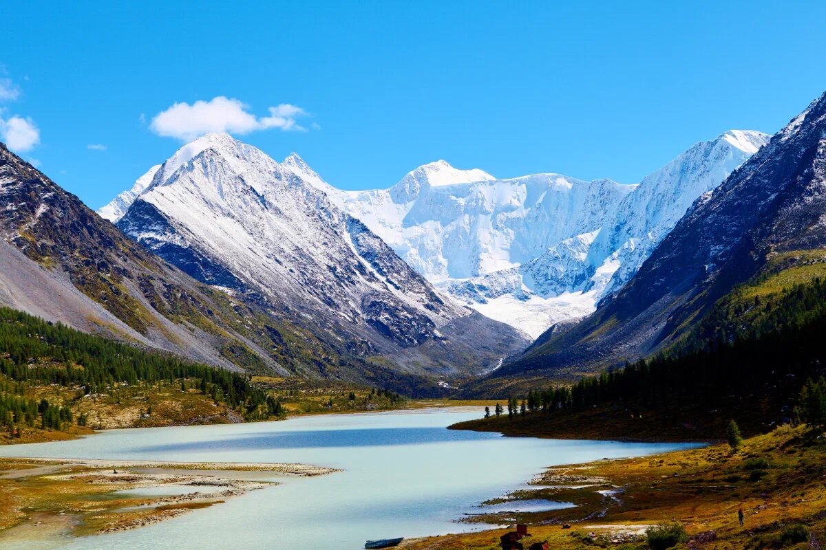 Белуха — самая высокая гора Сибири и гордость Алтая. Её высота — 4506 метров. Она расположена на границе России и Казахстана, где берет начало река Катунь. У Белухи две вершины — восточная и западная, а сама она считается священным местом у местных жителей. Климат здесь суровый: зима длинная и морозная, лето короткое и дождливое. У подножия простираются густые хвойные леса с елями, кедрами, пихтами и берёзами. Встречаются редкие растения, занесённые в Красную книгу.