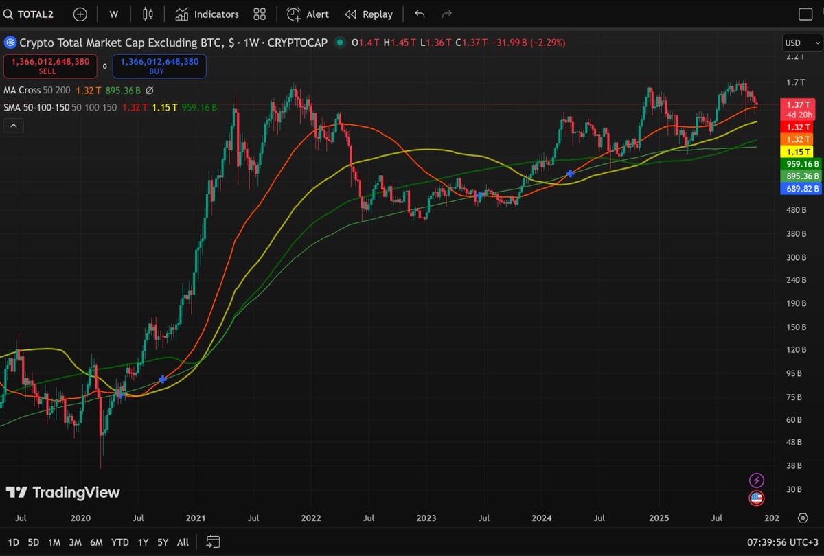 ΠΎΠ΄ΡΡΠ΅ΠΉ ΡΠ°Π·Ρ. Π‘ΠΊΠΎΡΠ΅Π΅ Π²ΡΠ΅Π³ΠΎ, Π±Π»ΠΈΠΆΠ°ΠΉΡΠΈΠ΅ Π½Π΅Π΄Π΅Π»ΠΈ ΡΠ²ΠΈΠ΄ΠΈΠΌ Π±ΠΎΠΊΠΎΠ²ΠΈΠΊ 1.35β1.5T. β³ Π‘ΡΠ΅Π΄Π½Π΅ΡΡΠΎΠΊ Π΄Π»Ρ Π°Π»ΡΡΠΊΠΎΠΈΠ½ΠΎΠ² (1β3 ΠΌΠ΅ΡΡΡΠ°) ΠΠ° Π½Π΅Π΄Π΅Π»ΡΠ½ΠΎΠΌ Π³ΡΠ°ΡΠΈΠΊΠ΅ TOTAL3 ΠΊΠ°ΠΏΠΈΡΠ°Π»ΠΈΠ·Π°ΡΠΈΡ ΠΎΠΊΠΎΠ»ΠΎ $966β1.0 ΡΡΠ»Π½, ΡΠ΅ΡΡΠΈΡΡΠ΅ΡΡΡ 50-Π½Π΅Π΄Π΅Π»ΡΠ½Π°Ρ SMA (~940B) β ΡΡΠΎ ΠΊΠ»ΡΡΠ΅Π²Π°Ρ ΠΏΠΎΠ΄Π΄Π΅ΡΠΆΠΊΠ° ΡΠ΅ΠΊΡΡΠ΅Π³ΠΎ ΡΠΈΠΊΠ»Π°. π’ ΠΡΠ»ΠΈ