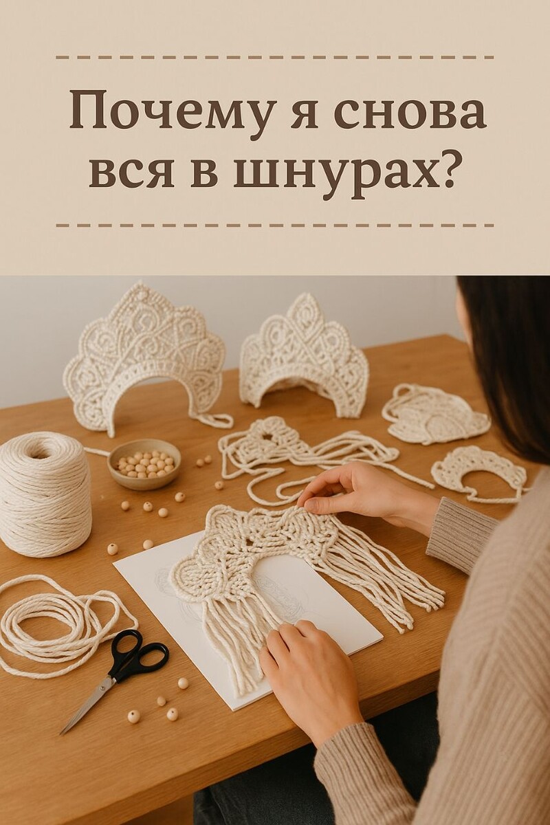 Почему ноябрь мой самый волшебный месяц 🌲 Не успела я закончить одно изделие, как приступаю к следующим. У меня творческий разгар, стол усыпан шнурами, заготовками и блокнот исписан творческими планами которые хотелось бы воплотить. В этом месяце хочу сплести топ из макраме для новогоднего образа и три вида кокошников. Хочу, чтобы в декабре каждая почувствовала себя особенной, не просто нарядной, а с настроением, где есть немного сказки. Эти работы про атмосферу, про уверенность и про то, что волшебство можно надеть. А ты уже представляешь свой новогодний образ? Каким он будет, уникальным, сказочным, волшебным? Поделись в комментариях, мне интересно.