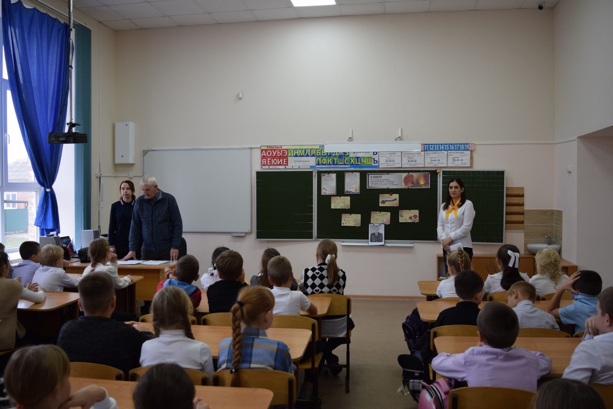 В преддверии Дня памяти погибших при выполнении служебных обязанностей сотрудников органов внутренних дел Российской Федерации правоохранители и ветераны ОМВД России по Щербиновскому району посетили среднюю образовательную школу № 3 им. Е.И. Гришко. Для учащихся 3-4 классов провели урок мужества под названием «Подвиг во имя жизни». В мероприятии приняли участие: председатель первичной ветеранской организации ОМВД России по Щербиновскому району подполковник милиции в отставке, ветеран боевых действий Анатолий Николаевич Михайличенко, психолог отделения по работе с личным составом ОМВД России по Щербиновскому району, старший лейтенант полиции Дина Анатольевна Юхман. Анатолий Николаевич рассказал детям о подвигах героев Щербиновского района отдавших жизнив годы Великой Отечественной войны. Также рассказал присутствующим о служебных командировках сотрудников правоохранительных органов на ближний Кавказ в период 1 и 2 Чеченской компаний. Дина Анатольевна рассказала о том, что в состав Отдел