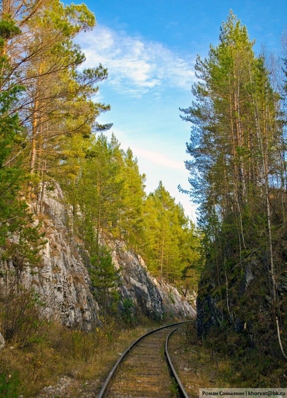 Промышленная железнодорожная ветка Салаир-Гурьевск, построенная в 30-е годы прошлого столетия, с целью индустриализации центра Кузбасса, частично проходит между скал Салаирского кряжа. В настоящее время железная дорога официально не используется. © khorvat
