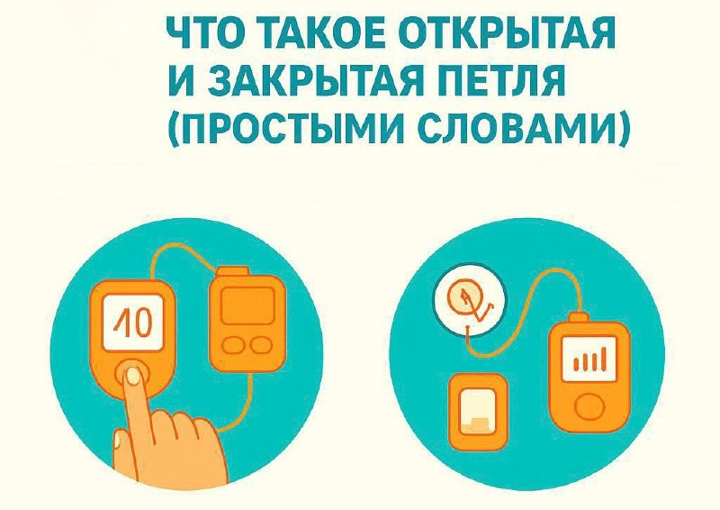 🔄 Закрытая петля: что это вообще такое? 🤔 В последнее время часто можно услышать: «Я на петле», «Открытая петля», «Закрытая петля» — и у многих возникает логичный вопрос: а что это вообще значит? Давайте разбираться 👇🏼 🔹 Открытая петля Это когда твой сенсор и помпа работают вместе, но решение всё равно принимаешь ты. Сенсор показывает уровень глюкозы → ты сам анализируешь данные → вводишь нужную дозу инсулина вручную. 💡 В FreeLife есть калькулятор болюса, который помогает рассчитать нужное количество инсулина. ⚠️ Помни: в открытой петле помпа не вводит инсулин сама, она просто выполняет твои команды. 🔸 Закрытая петля Это уже новый уровень автоматизации. Сенсор передаёт данные о глюкозе, система анализирует их и сама корректирует подачу инсулина. 📊 То есть алгоритм работает почти как искусственная поджелудочная железа: она следит за сахаром, регулирует дозу и помогает держать всё в балансе. Но важно: даже с закрытой петлёй нельзя «забыть про диабет». Система - твой помощн