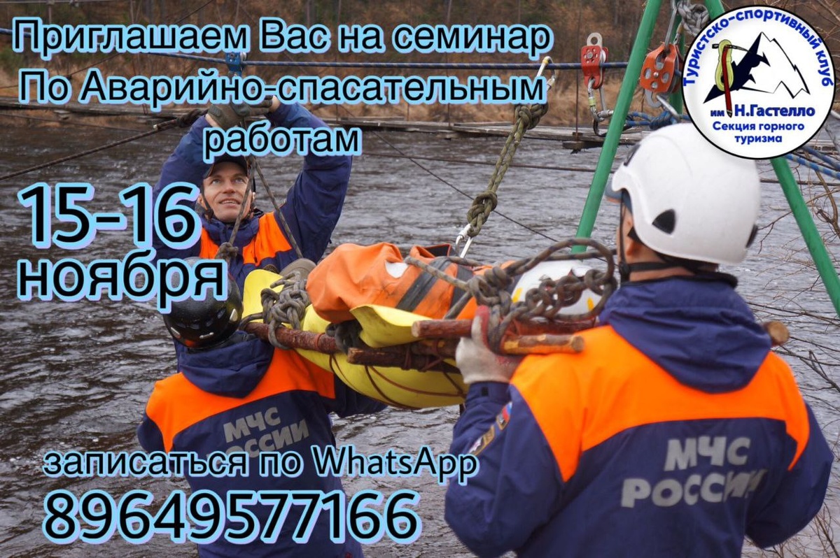 Доброго времени суток! Напоминаю о участие 15-16 ноября в семинаре по аварийно-спасательным работам в горно-таежной местности силами туристской группы. Кто ездит заполните пожалуйста форму по ссылке: https://docs.google.com/forms/d/e/1FAIpQLSfTh8NZW6AIW-o70F26JZgFp93UfheQcVnsgEUbNcebJGTM3A/viewform?usp=header Чтоб добавить Вас в чат, добавить в таблицу где будет обсуждение и информация по выезду. Так же для нас необходима информация чтоб взять необходимое количество снаряжение на Всех участников. Информация по АСР в ВК https://vk.com/club233146532