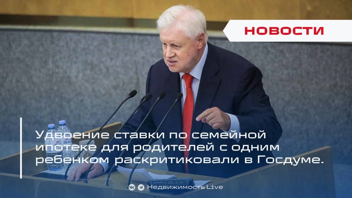 ⚡️ Удвоение ставки по семейной ипотеке для родителей с одним ребенком раскритиковали в Госдуме