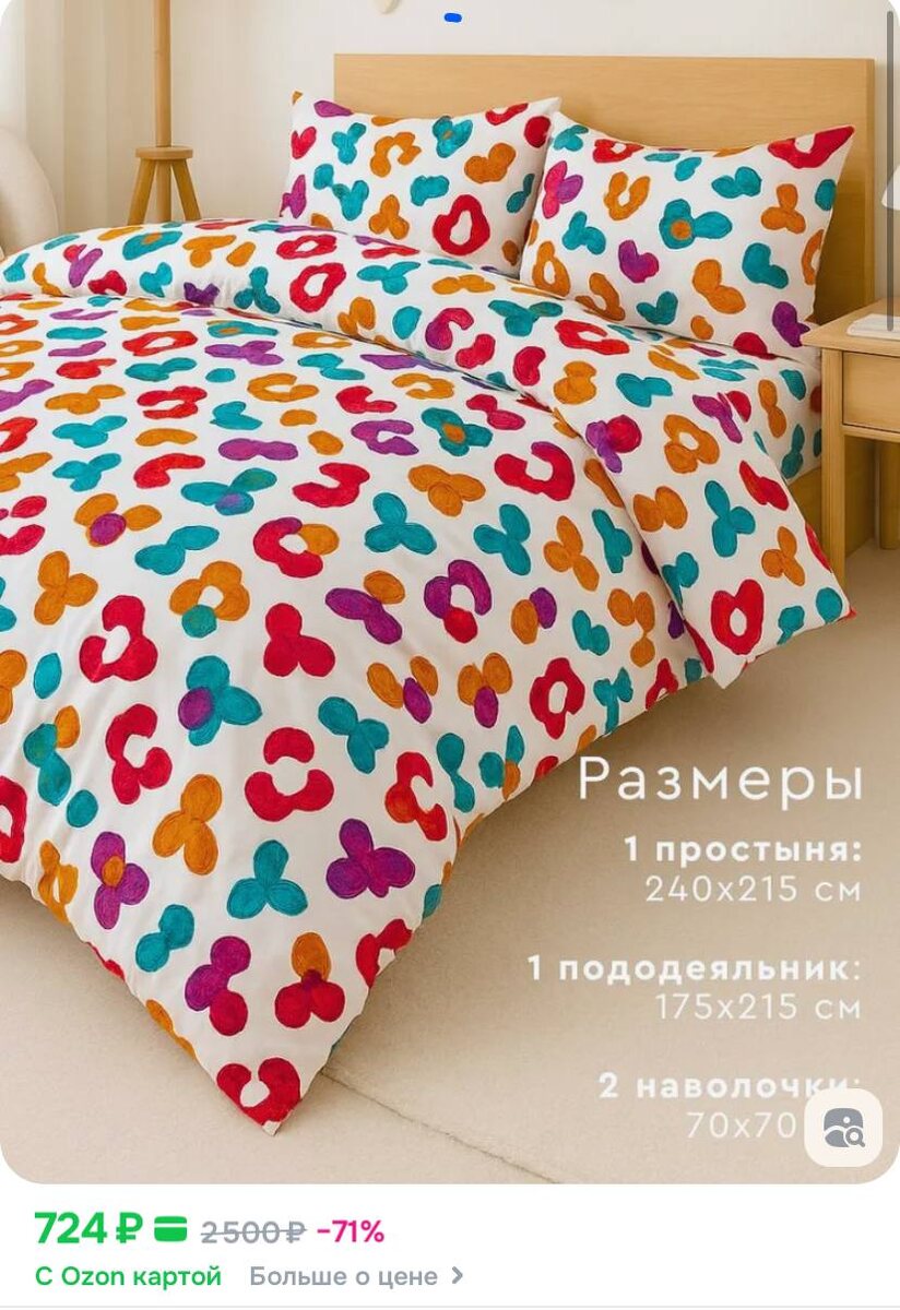 Веселина Комплект постельного белья, Полиэстер, Двуспальный с простыней Евро, наволочки 70x70 https://ozon.ru/t/l7bllg7 +списываем бонусы продавца Цена на 🛍: 724 ₽ | 2500 ₽ С бонусами цена 624 ₽ 😍 рейтинг: 4.9 ⭐️ выгодная цена 💲 ✅ Подписаться 🔣 Бот с промокодами