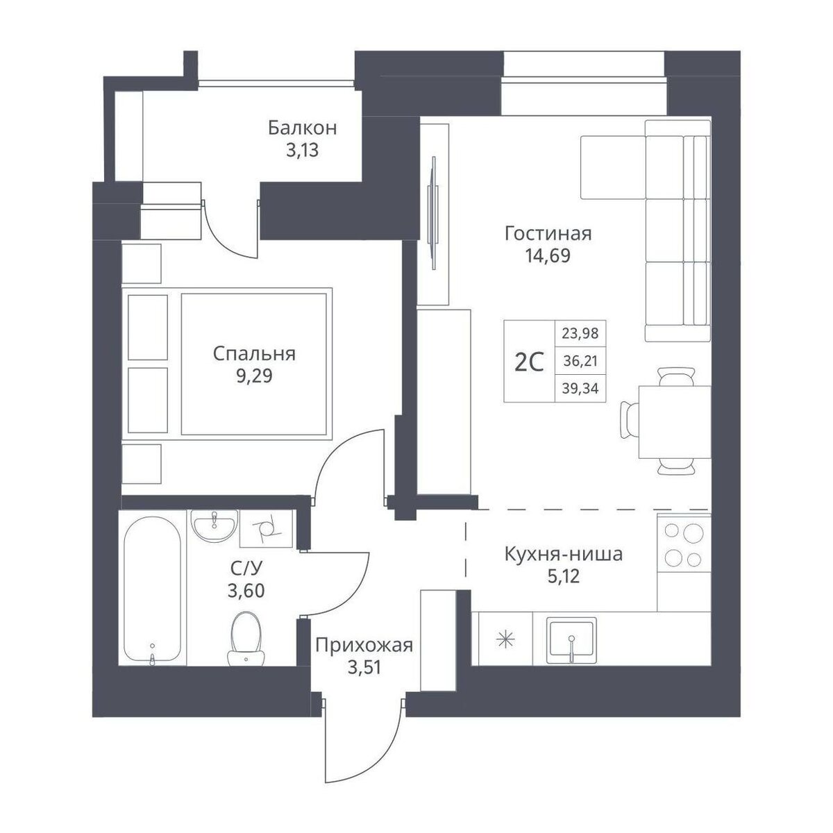 Двухкомнатная студия в ЖК Бизнес классе с первым взносом 285 000 по IT-ипотеке