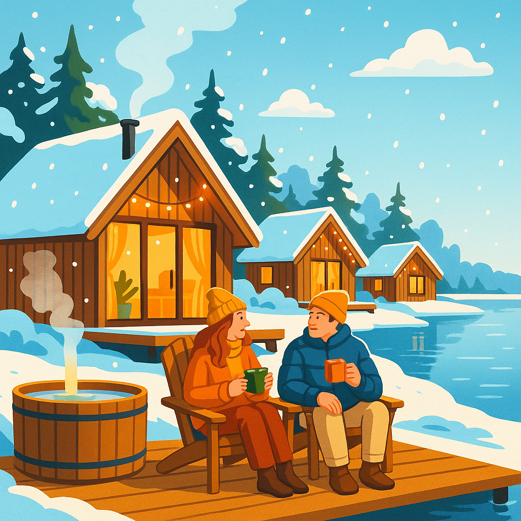 Домики с панорамными окнами позволяют любоваться зимним пейзажем, не выходя из-под пледа — идеальное начало года. В январе Рузское водохранилище особенно красиво. Лёд, заснеженные берега, лёгкий пар над водой и полная тишина — всё располагает к отдыху от городской суеты.