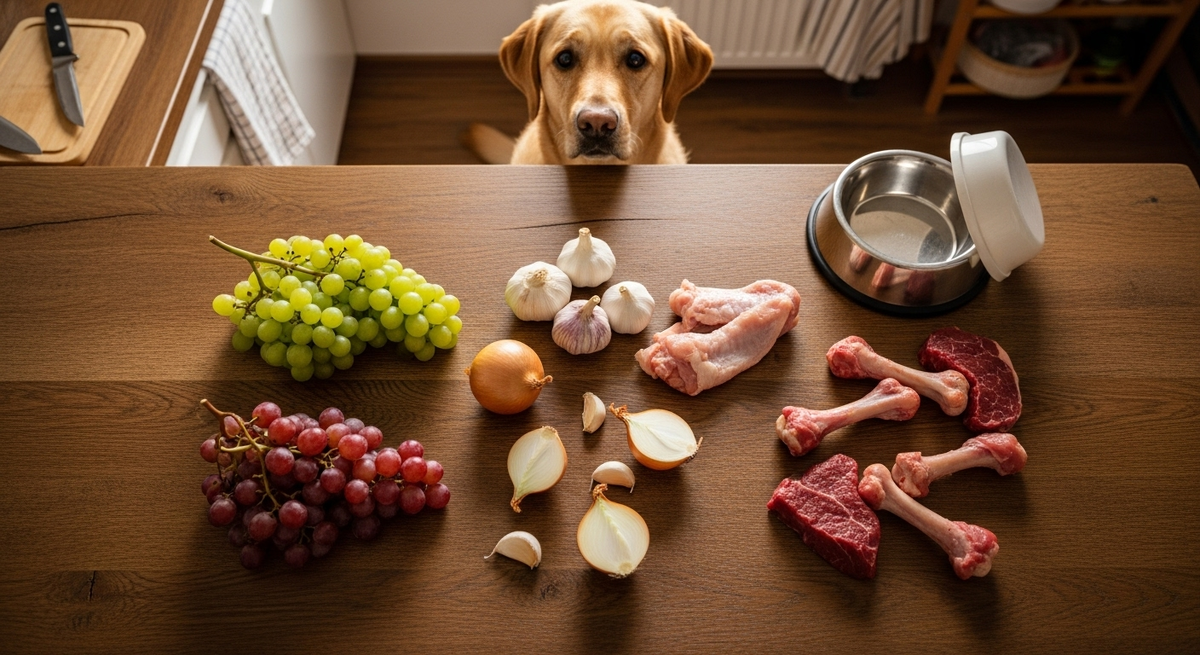Собака не может прочитать статью о токсичных продуктах. Она не понимает, что виноград убьёт её почки, а кость проткнёт кишечник. Она просто ест то, что вы даёте.