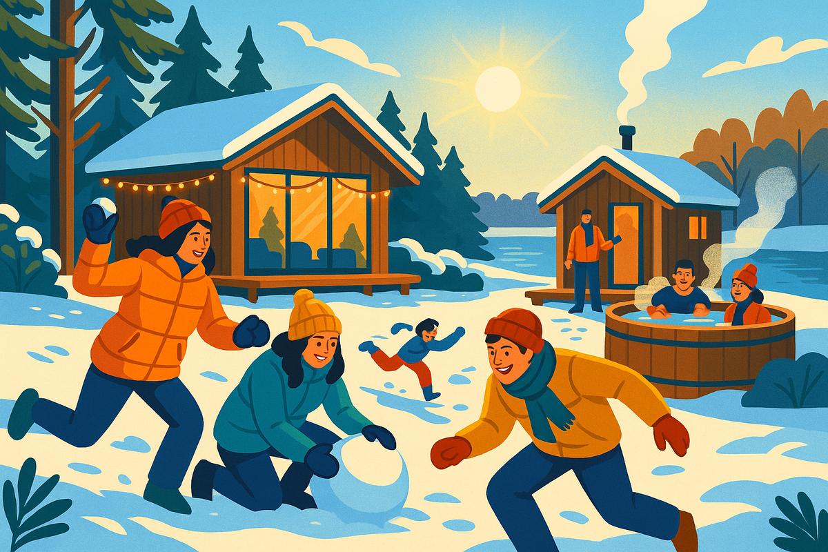 Во-вторых, выезд на природу даёт ощущение свежего начала и наполняет энергией. На природе нет привычных офисных ролей — люди становятся ближе, появляются искренние разговоры и новые идеи. Для команд из 5–15 человек выездной тимбилдинг можно организовать как короткий зимний уикенд.