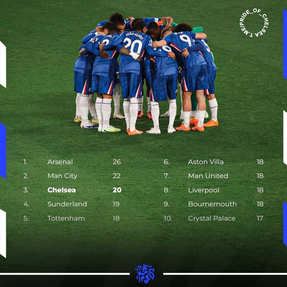 🦁 Перед международным перерывом «Челси» занимает третье место в турнирной таблице АПЛ.