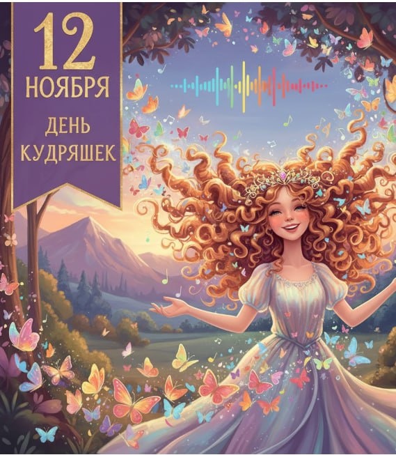 12 ноября — День Кудряшек 👩🏻🦱 Кудряшки пляшут, словно лучики зари, 🌞 Играют с ветром, шепчут: «Посмотри!». В них солнце спряталось, смеясь тайком, Кудряшки — радость, что живёт кругом. ✨