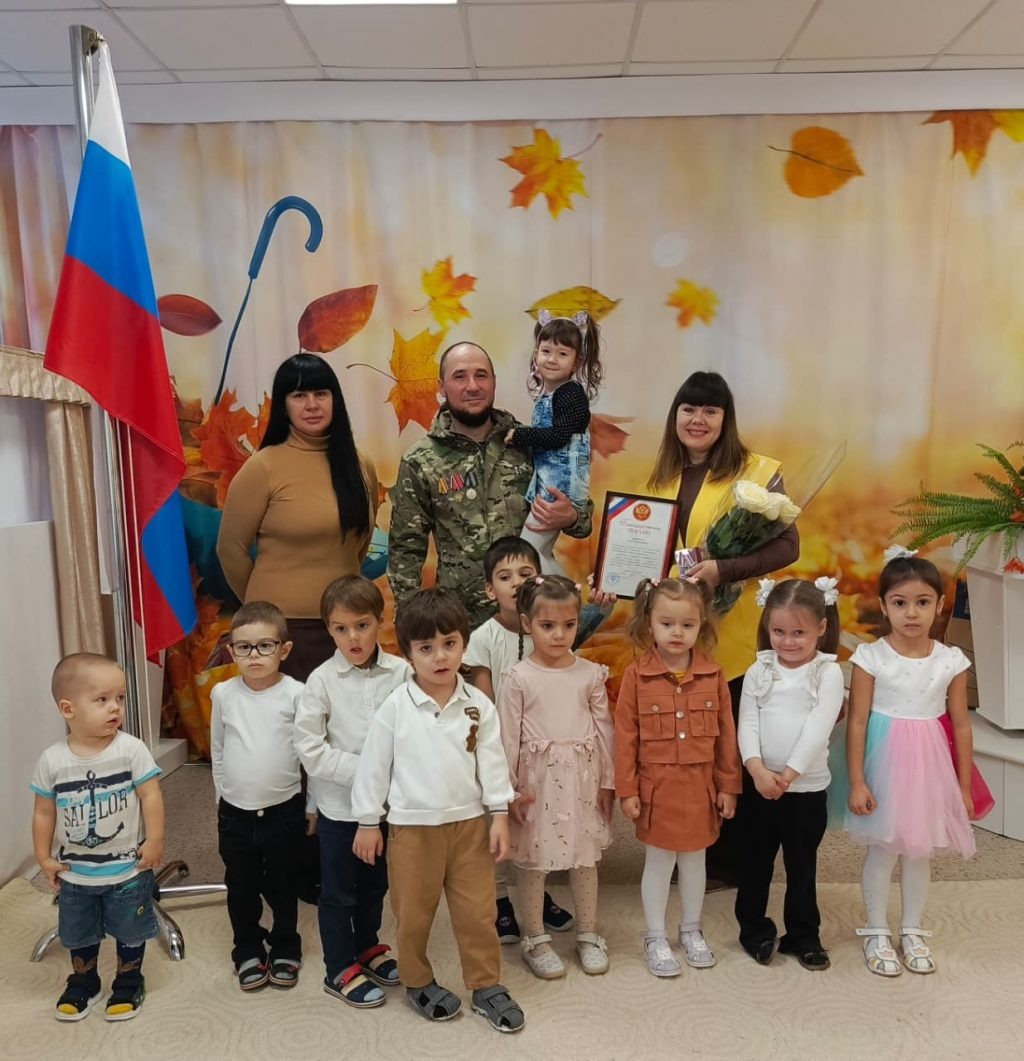 Встреча с участником СВО стала важным событием в детском саду. В ходе откровенного разговора ребята с большим интересом слушали воспоминания героя о боевых товарищах, о трудностях, долге и мужестве. Встреча была волнительной и запоминающейся. Воспитанники ДОУ, совместно с участниками «Движения первых» на конкретном примере увидели, что настоящие герои живут рядом. Что мужество, храбрость и любовь к Родине — это качества настоящего человека и гражданина своей страны. За активную поддержку и гуманитарную помощь отряду, за создание условий для формирования, воспитания нравственно-патриотических чувств в ДОУ, коллектив и воспитанники детского сада в лице заведующей, Майоровой Елены Владимировны были награждены благодарственным письмом и медалью «Волонтера России». МБ ДОУ № 26