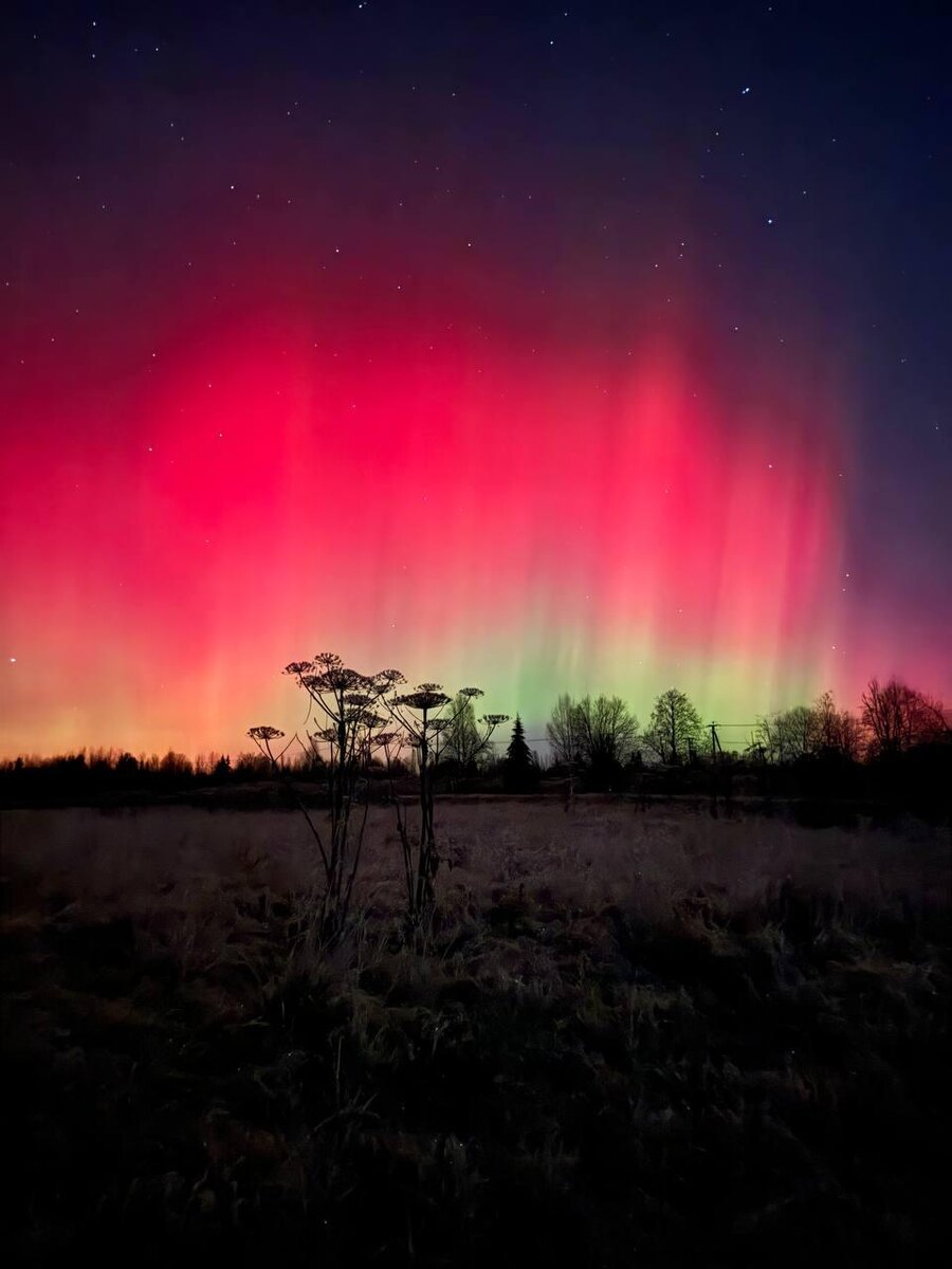 В ответ на пост ☀️ На Земле начался сильный геомагнитный шторм. Сейчас Kp-индекс почти достигает максимально возможного уровня — 8,3 из 9 возможных. 🔥 Минувшей ночью «охотникам за северными сияниями» удалось сделать фото ярких сполохов. Если вам тоже посчастливилось сделать красивые кадры, покажите фото в комментариях 💙 Фото: АстроФотоБолото 💧 Подписывайтесь на Гисметео