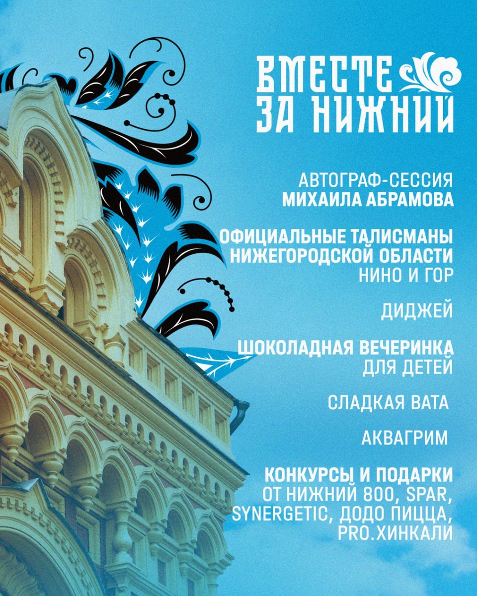 Сегодня в центральном фойе «Нагорного» вас ждет праздник хоккея в рамках проекта «Вместе за Нижний» ⚡️ Автограф-сессия Михаила Абрамова, встреча с талисманами Нижегородской области — НиНо и Гором, шоколадная вечеринка для детей, сладкая вата, аквагрим и DJ — все для отличного настроения перед матчем! Конкурсы и подарки от партнеров Нижний 800, SPAR, SYNERGETIC, Додо Пицца и PRO.Хинкали — не пропустите! 👏 Ждем всех на хоккее! 🦌