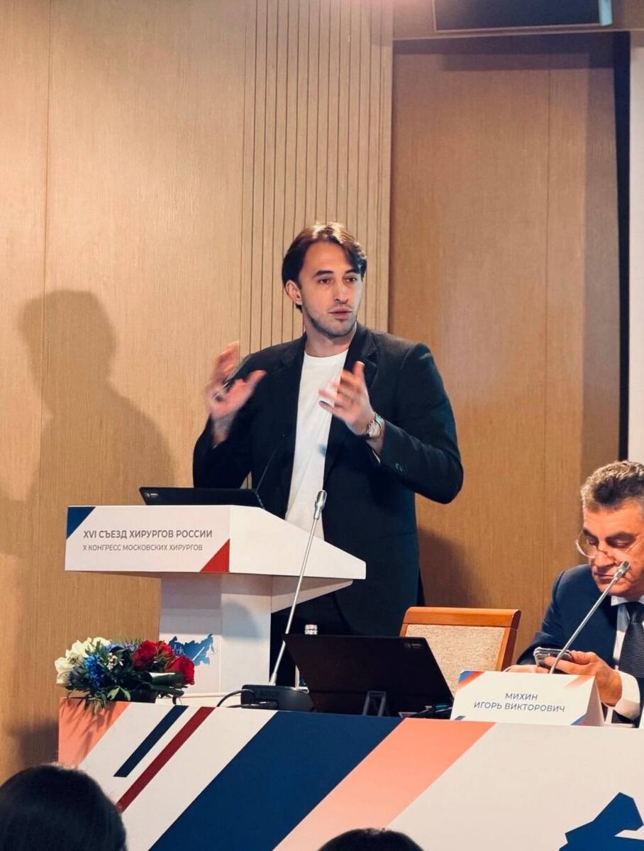Не устаем восхищаться нашими врачами! Предполагаем, что в сутках у специалистов не 24 часа, как у всех, – а все 36 (если не больше!), иначе как объяснить, что успевают проводить и сложные операции, и обучать новым знаниям наших студентов и ординаторов, и представлять исследовательские проекты на Международных площадках. Заведующий операционным блоком №1 Университетского клинического центра им. В.В. Виноградова (филиал) РУДН, врач - хирург, член Российского общества хирургов, к.м.н. Михаил Владимирович Косаченко на XVI Съезде хирургов России, проведенном совместно с X Конгрессом московских хирургов, представил доклад о технологии ICG, разработанной в нашей клинике. ©️Современная хирургия - это хирургия точных координат. ICG - это не «еще один датчик», а философия безопасности, возможность в реальном времени визуализировать желчные протоки и сосуды, что кардинально снижает риск повреждений. Российская хирургия уверенно движется в сторону малоинвазивности, цифровизации и персонализации©
