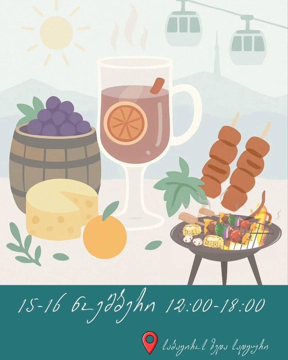 В предстоящие выходные дни, 15 и 16 ноября, с 12:00 до 18:00, в парке Мтацминда пройдет гастрономический фестиваль под открытым небом. На мероприятии посетителям предложат традиционные грузинские блюда, такие как шашлык и эларджи, а также глинтвейн и другие сезонные угощения. Кроме кулинарных изысков, гостей ожидает ярмарка изделий ручной работы, музыкальная программа и, несомненно, живописные виды на город с вершины Мтацминда. ________________________________ Все новости и события в Грузии здесь: https://tk-batumi.tilda.ws Если вам понравился материал: - подпишитесь; - подпишитесь на канал «Фаэтон» в телеграм: https://t.me/chveni_batumi Благодарим всех наших подписчиков за поддержку. #грузия #батуми #тбилиси #новостигрузии