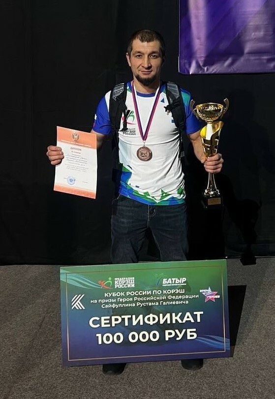 Командный кубок России по борьбе на поясах (корэш) на призы Героя РФ Рустама Сайфуллина прошёл в г. Тюмени... Командный кубок России по борьбе на поясах (корэш) на призы Героя РФ Рустама Сайфуллина прошёл в г. Тюмени. В составе сборной Башкортостана участвовал мелеузовский борец Рустам Кашафутдинов (тренер-преподаватель Ильмир Юлмухаметов). По итогам состязаний команда нашей республики заняла почётное третье место. В своей весовой категории Рустам стал победителем. Поздравляем! Гульнара КАЗАНОВА, методист ДЮСШ с. Зирган. Фото из архива Р. Кашафутдинова.