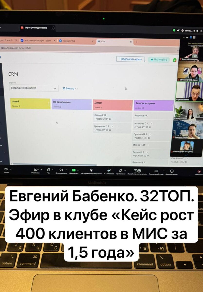 У нас в клубе сегодня провел эфир Евгений Бабенко с командой на тему: Кейс роста 400 клиентов в МИС за 1,5 года - поделился лайфхаками по продвижению на рынке стоматологий - разобрали продукт и его значение в росте компании - пробежались по всем источникам трафика - раскрыли внутренние цифры рынка - поделились видением рынка Мощнейший эфир. Женя и команда, спасибо за время. Красавчики. Полезно всем маркетологам, разработчиками, предпринимателям. Запись лежит в клубе. Вход в клуб пока закрыт. Но в декабре вы сможете зайти. Пока не забудьте нажать на чат-бот, чтобы не забыть: @firstmarketingclub_bot