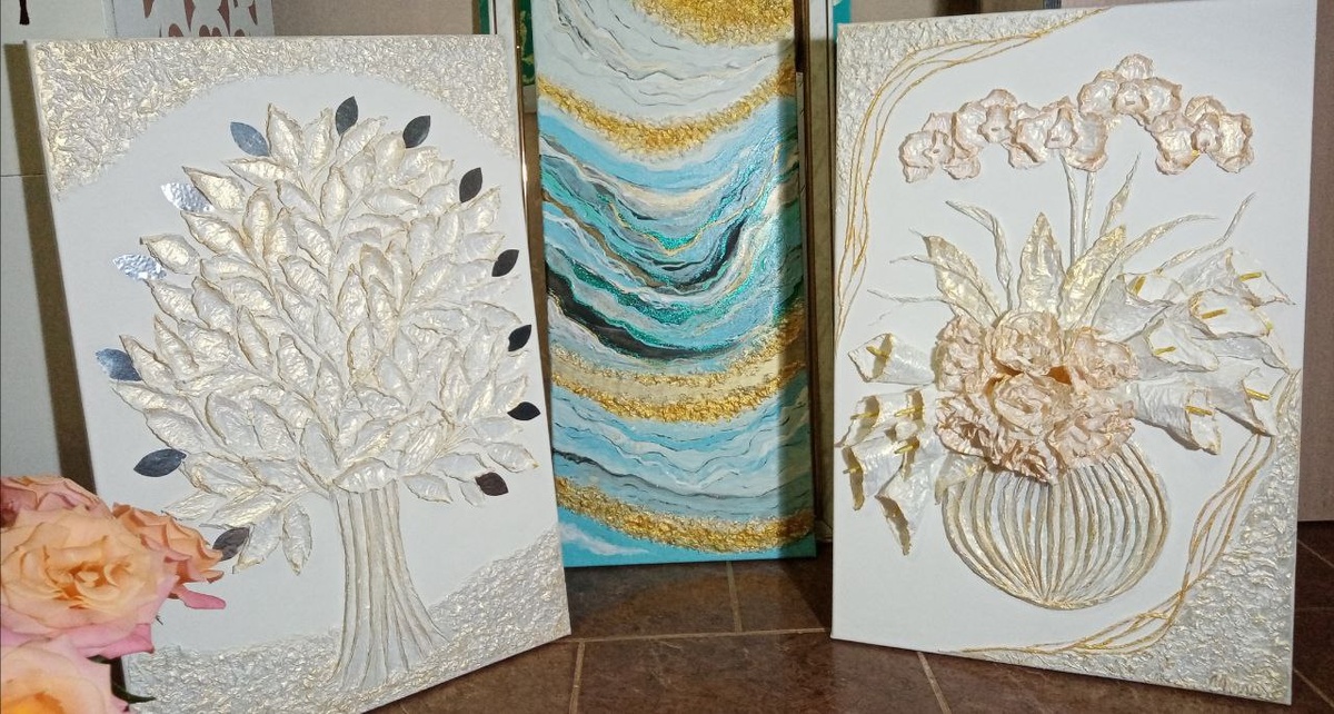 Давайте знакомиться! Меня зовут Мила, и я нахожусь в том прекрасном возрасте, когда наконец-то можно творить и делать то, что по-настоящему наполняет жизнь смыслом. Уже больше четырех лет я создаю картины, и это творчество стало моим дыханием. Хотя я нигде не училась живописи, у меня был лучший вдохновитель — моя мама, художник-оформитель. С детства я впитывала красоту, наблюдая, как она создаёт свои работы. И теперь пришло моё время делиться с вами своим стилем и видением этого прекрасного мира! Всё просто: в 45 лет я поняла, что пора перестать откладывать мечты на «когда-нибудь». Дети выросли, появилось пространство для себя, а главное — пришло осознание, что творчество может быть не просто хобби, а настоящей терапией. Каждая моя картина — это отпечаток души, застывшая эмоция, рассказ без слов. Я заметила удивительную вещь: стоит мне поработать с красками пару часов — и в голове наступает порядок. Творчество стало моим личным психологом: Вот, например, моя картина «Цветы» — в ней тол