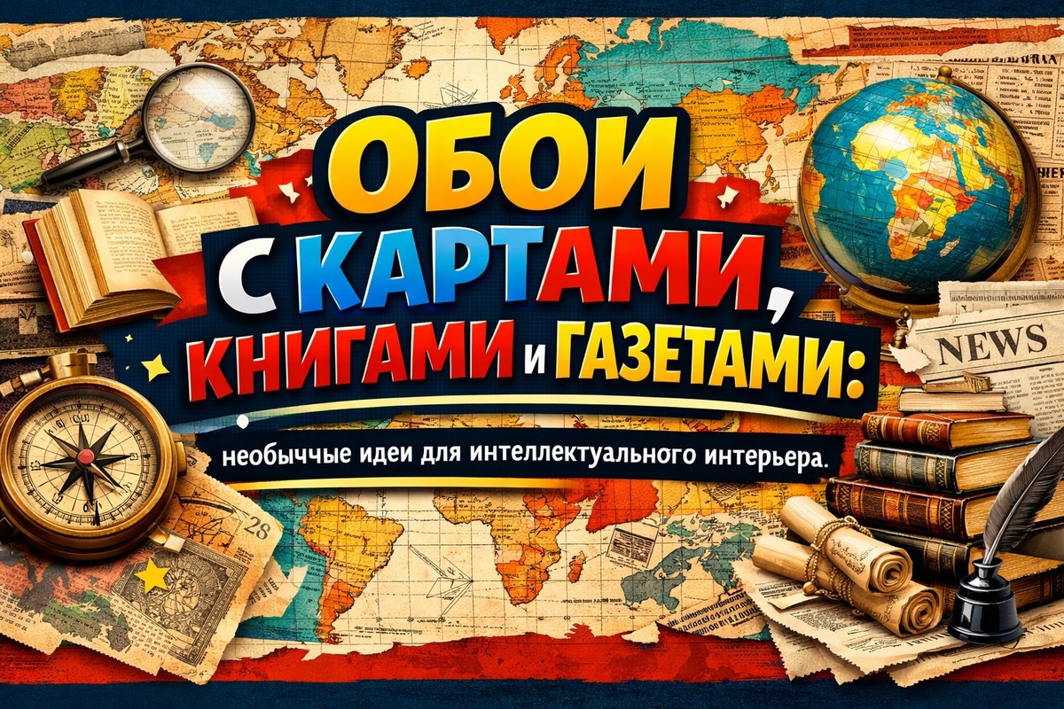 Обои с картами, книгами и газетами: необычные идеи для интеллектуального интерьера 🗺️📚