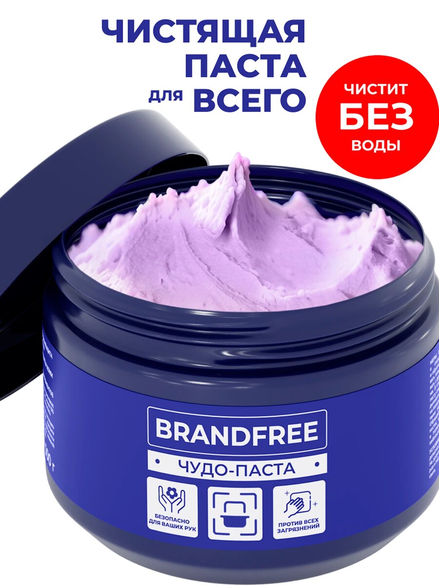 Универсальная чистящая паста Brandfree (пятновыводитель для твёрдых поверхностей, 500 г) — надёжный помощник в доме для борьбы с застарелыми пятнами, налётом и потерей блеска. Практичная пастообразная консистенция легко распределяется, работает точечно и экономично расходуется — одна баночки хватает надолго.