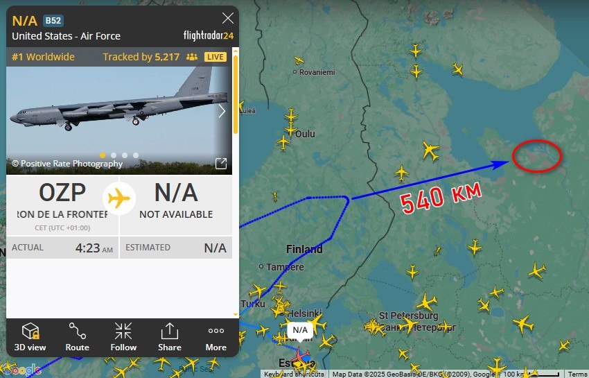🗺❗️Часом ранее B-52H ВВС США отработал высокоточный массированный удар по расположенной в Северодвинске Беломорской военно-морской базе в Северодвинске, а также по расположенным в городе мощностям ОАО «Севмаш» и Центр судоремонта «Звёздочка». Наиболее вероятно, что были выполнены "цифровые" пуски стратегических КР AGM-86D ALCM, AGM-181A. Судя по маршруту полёта машины, рубежи условного пуска находились в воздушном пространстве Финляндии всего в 540 км от Северодвинска. По завершении учения эскортирование B-52H осуществляли британские Typhoon FGR.4, в то время как самолёт ДРЛОиУ E-3A Sentry из воздушного пространства Эстонии мониторил воздушное пространство России над Ленинградской областью на предмет ответной реакции МиГ-31БМ и Су-35С на действия экипажа B-52H. Налицо рьяная готовность администрации Трампа к конструктивным переговорам. https://dzen.ru/id/6425916a1950720421f18802
