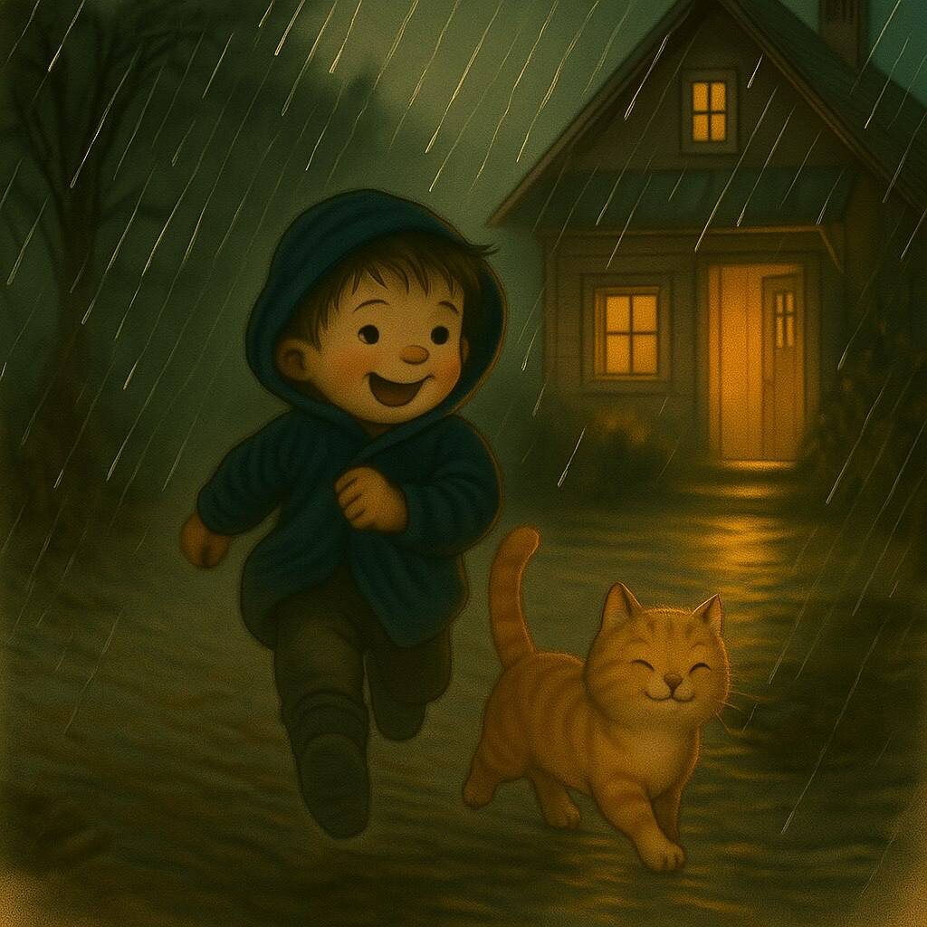 История # 22 В одном маленьком городке как мы уже знаем жил мальчик по имени Гоша. Он был очень любознательным и всегда искал приключения. У него как мы тоже уже знаем был верный друг — котик по имени Палёнка. Палёнка был пушистым и веселым. Однажды солнечным утром Гоша и Палёнка решили пойти гулять в парк. Они радовались, играли в прятки среди деревьев и собирали красивые листья. Но вдруг небо затянуло тучами, и начался дождь. Сначала капли падали тихо, но вскоре превратились в настоящий ливень. — Ой, Палёнка! — испугался Гоша. — У нас же нет зонтика! Котик, не теряя времени, предложил: — Давай спрячемся на веранде в парке! Они быстро побежали к уютной веранде, где стояли столики и стулья. Гоша и Палёнка устроились под крышей и наблюдали, как дождь стучит по земле. — Какой сильный дождь! — удивился Гоша. — Надо ждать, пока он закончится. Но дождь не собирался останавливаться. Он лил так долго, что Гоша начал беспокоиться. — Может, нам стоит бежать домой? — предложил он. — Д