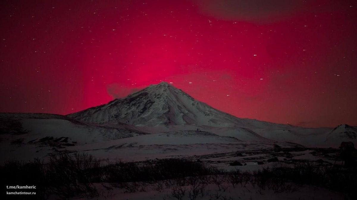 Очень редкое для юга Камчатки явление - северное сияние, наблюдали вечером в среду у наших "домашних" вулканов и даже, говорят, в