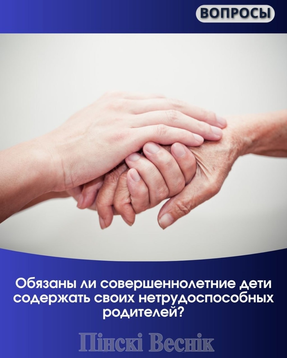 📌Обязаны ли совершеннолетние дети содержать своих нетрудоспособных родителей? Конституция Республики Беларусь и законодательство о браке и семье закрепляет обязанность совершеннолетних трудоспособных детей заботиться о родителях и предоставлять содержание нетрудоспособным, нуждающимся в помощи родителям. Вместе с тем, указанные обязанности совершеннолетними трудоспособными детьми не всегда выполняются, о чем свидетельствует судебная практика. Продолжение по ссылке #вопросы #суд @Пинский Вестник ЮТУБ | САЙТ| ИНСТ | ВК | ОК | ФЕ | Прислать новость