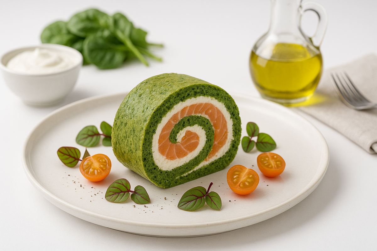 Зеленый бисквит с ароматом моря: рулет со шпинатом и лососем