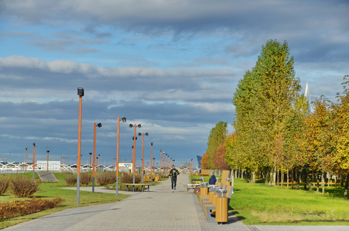 Тем не менее это место наконец-то приобрело презентабельный вид. Отсюда по-прежнему можно даже разглядеть еще не спрятанный за новыми жилыми домами Финский залив.