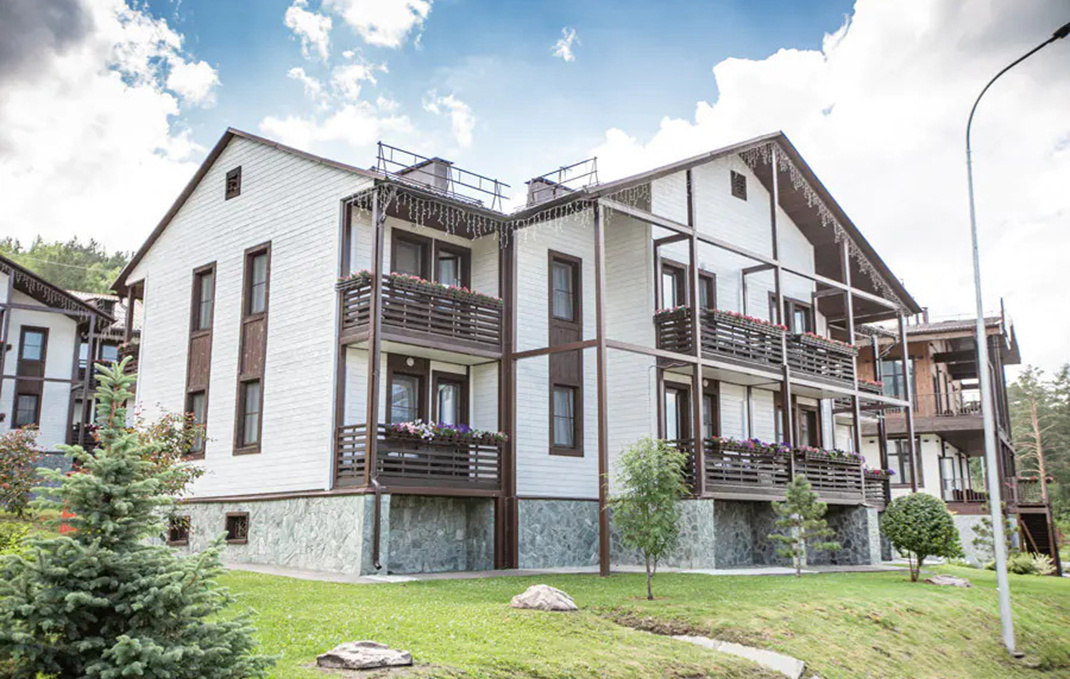 Этот комплекс возвышается среди живописных гор рядом с курортом «Газпром». Отсюда совсем недалеко до канатных дорог и трасс. А летом можно будет отправиться на экскурсии и прогулки по горам. После активного дня гостям будет приятно окунуться в открытый бассейн, вода в котором подогревается.