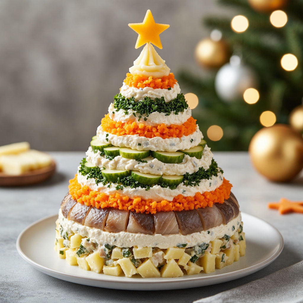 Привет, друзья! Хотите удивить гостей на новогоднем столе? Откажитесь от привычных тарелок с салатами и создайте настоящий кулинарный шедевр! Сегодня я расскажу, как превратить классическую «Селёдку под шубой» в эффектную «Новогоднюю ёлку». Гарантирую: ваши близкие будут в восторге! 🎄 🔰 Почему это круто? 🍴 Порция рассчитана на двух взрослых и двух деток. Стоимость ингредиентов — примерно 182,14–200 руб. Что нам понадобится? Пошаговая инструкция: как создать салат-ёлку 1️⃣ Подготовим основу — «Основание ёлки»: Совет от шеф-повара (то есть от меня): картофель — как фундамент дома, без него всё развалится! 2️⃣ Строим «Ствол ёлки»: 3️⃣ Создаём цветные кольца: 4️⃣ Добавляем «Иней на ветках»: ❄️ Белый цвет имитирует снег на верхушке ёлки — красиво и символично! 5️⃣ Финальные штрихи — украшения: ✨ Важные моменты: И вуаля! Ваша новогодняя ёлка готова! Подавайте салат на стол и наслаждайтесь восхищёнными взглядами гостей. С таким шедевром ваш новогодний стол точно будет самым запоминающи