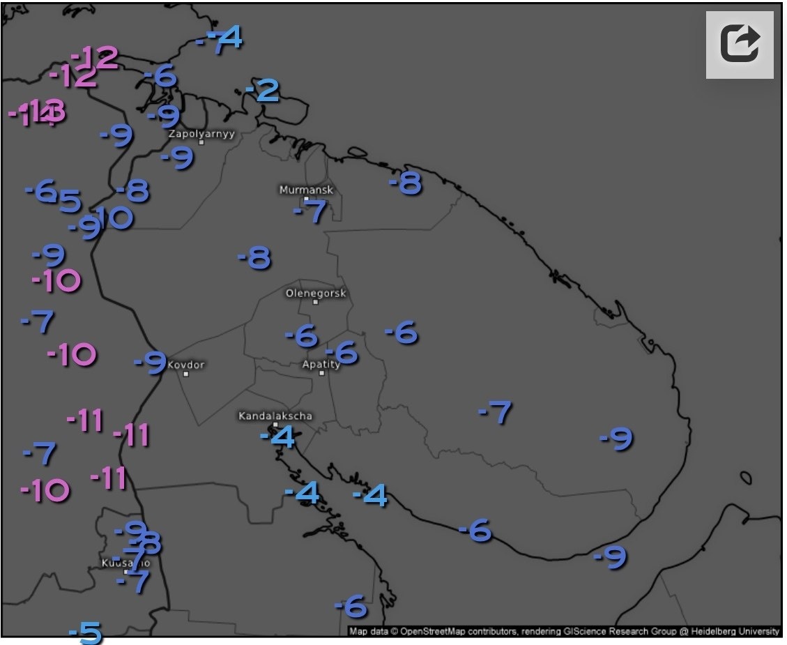 ❄️Ночью в Мурманской области столбики термометров опустились до -10 Морозной выдалась ночь. Об этом рассказали в группе ВК «Погода в Мурманске». Минимальные температуры по всей области, за исключением юга, составили -6...-10. Днем температура начнет постепенно повышаться за счет приближения облачности циклона.