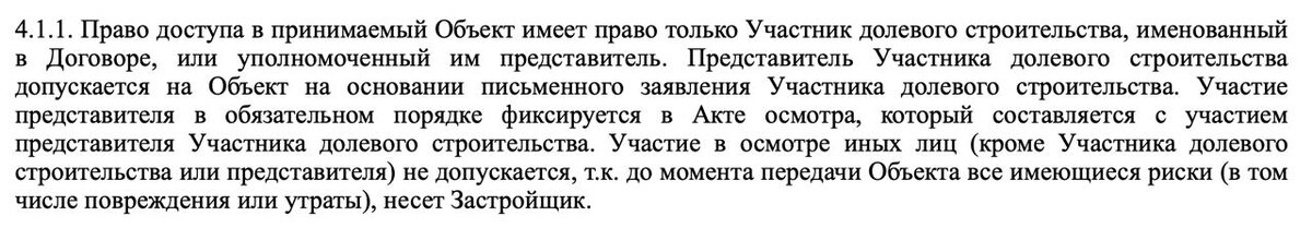 ΠΏΡΠΎΠ΅ΠΊΡ Π½Π° Π§Π΅ΡΠΊΠ°ΡΡΠΊΠΎΠΉ πΠ‘ΡΡΡ: - Π Π΄ΠΎΠ³ΠΎΠ²ΠΎΡΠ΅ Π΄ΠΎΠ»Π΅Π²ΠΎΠ³ΠΎ ΡΡΠ°ΡΡΠΈΡ ΠΈΠ½ΡΠ΅ΡΠ΅ΡΠ½ΡΠΉ ΠΏΡΠ½ΠΊΡ ΠΎ ΡΠΎΠΌ, ΡΡΠΎ ΠΏΠΎΡΠ»Π΅ Π·Π°Π²Π΅ΡΡΠ΅Π½ΠΈΡ ΡΡΡΠΎΠΈΡΠ΅Π»ΡΡΡΠ²Π° Π½Π° ΠΏΡΠΈΠ΅ΠΌΠΊΠ΅ ΠΊΠ²Π°ΡΡΠΈΡΡ ΠΌΠΎΠΆΠ΅Ρ ΠΏΡΠΈΡΡΡΡΡΠ²ΠΎΠ²Π°ΡΡ ΡΠΎΠ»ΡΠΊΠΎ ΠΏΠΎΠΊΡΠΏΠ°ΡΠ΅Π»Ρ ΠΈΠ»ΠΈ Π΅Π³ΠΎ ΠΏΡΠ΅Π΄ΡΡΠ°Π²ΠΈΡΠ΅Π»Ρ (ΠΏΠΎ Π΄ΠΎΠ²Π΅ΡΠ΅Π½Π½ΠΎΡΡΠΈ) Π’ΠΎ Π΅ΡΡΡ, Π·Π°ΡΡΡΠΎΠΉΡΠΈΠΊ ΠΈΠ·Π½Π°ΡΠ°Π»ΡΠ½ΠΎ (ΠΏΡΠΎΡΠΈΠ²ΠΎΠ·Π°ΠΊΠΎΠ½Π½ΠΎ) Π·Π°ΠΏΡΠ΅ΡΠ°Π΅Ρ ΠΏΡΠΈΡΡΡΡΡΠ²ΠΈΠ΅ Π½Π° ΠΏΡΠΈΠ΅ΠΌΠΊΠ΅ ΠΊΠ²Π°ΡΡΠΈΡ ΡΠΏΠ΅ΡΠΈΠ°Π»ΠΈΡΡΠΎΠ² ΠΏΠΎ ΠΏΡΠΈΠ΅ΠΌΠΊΠ΅ ΠΈΠ»ΠΈ Π΄ΡΡΠ³ΠΈΡ