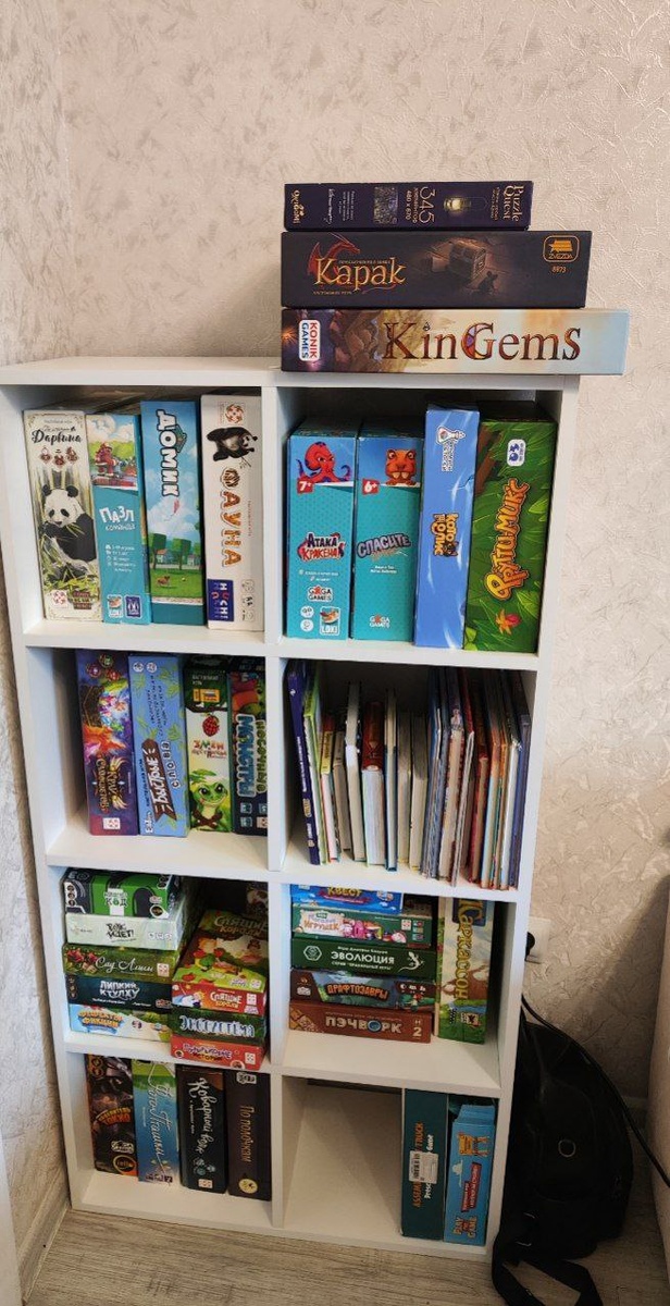 Промежуточный результат... Полки ломятся от книг и настолок. Решила заказать ещё один стеллаж, нашла свободный угол, узнала стоимость индивидуального изготовления, и решила обойтись бюджетным вариантом. Измерила точные размеры и покоряла маркетплейсы в поисках нужного. И нашлись ведь, первый уже собрали, второй ждет своего часа, его нужно будет закрепить как то сверху (я ещё не придумала как). Мирон сразу сложил книги, которые не влезли в книжные стеллажи 😂, а я примерила коробки, войдут ли 🙄 Надеюсь, что большинство войдет, неформат остаётся в шкафу, где они и раньше были. Большинство коробоку меня хранится в шкафу, в несколько рядов и закрыты дверками, в итоге доставать очень неудобно было, да и место закончилось там тоже уже...😭 Матвей помогал собирать стеллаж, а потом жадно поглощал глазами игры, про которые успел забыть. Как все доделаем и вновь переберем детскую (стеллаж теперь живёт в кухне-гостинной), хочу снять полочки свои. Нужно? Смотреть будете?)