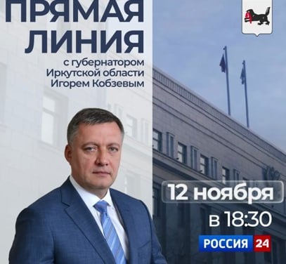 Губернатор Игорь Кобзев проведёт прямую линию с жителями 12 ноября Прямая линия Губернатора Иркутской области Игоря Кобзева пройдёт 12 ноября 2025 года. Трансляция состоится на телеканале «Россия24». Начало в 18.30. ✍️ Задать свои вопросы главе региона можно уже сегодня через платформу обратной связи, а также под постами о прямой линии в официальном телеграм-канале Игоря Кобзева и на официальных страницах Губернатора в социальных сетях «ВКонтакте» и «Одноклассники».
