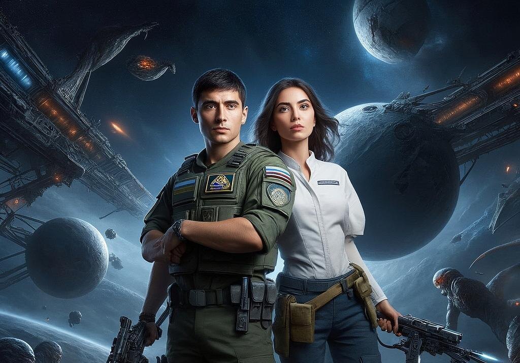 Илья Киселев стоял перед стартовым отсеком корабля, сжимая в руках боевой шлем и проверяя снаряжение. Рядом находилась Йолдыз Мухаррямова — красавица-экзобиолог, чьи исследования могли изменить будущее человечества. Они готовились отправиться в первый межгалактический полёт, полный опасностей и неизвестности.