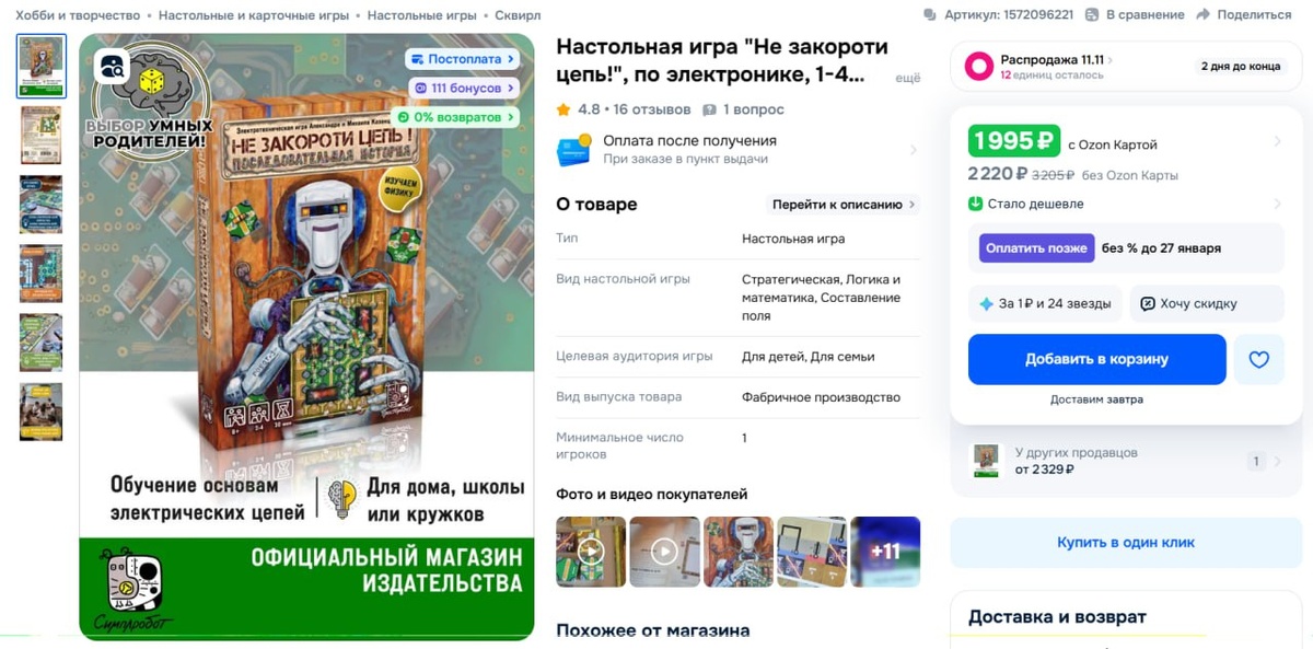Друзья, сегодня у Озон «аттракцион невиданное щедрости» за их счет (то есть наши цены остаются неизменными и скидка идет не за наш счет) на «Битву Големов» и «Не закороти Цепь!» ozon.ru/t/WN8NOnl ozon.ru/t/NIDIkP0 Успевайте купить игры по оптовым ценам :)