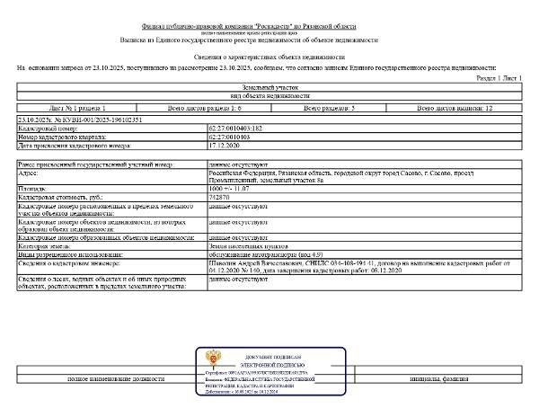Название: Земельный участок с кадастровым номером 62:27:0010403:182 площадь 1000 по адресу Российская Федерация, Рязанская область