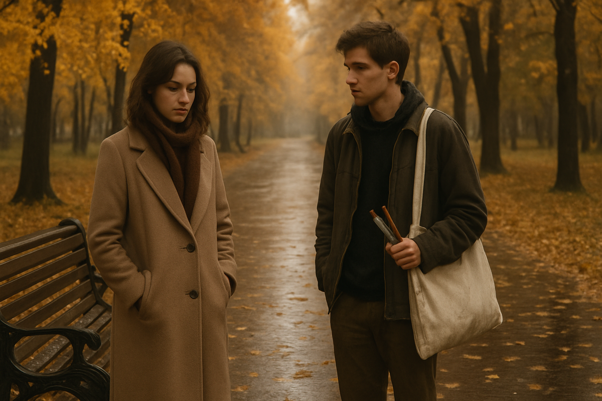 Дима отложил альбом и наклонился ближе. Его глаза, цвета осеннего неба, смотрели так, будто читали невидимый текст моей жизни. Он привлекал меня не силой или внешностью — нет, это была его способность замечать трещины. "Ты рисуешь словами, правда? Я вижу это в твоих глазах — истории, которые ждут, чтобы их выпустили". Он достал из кармана маленький блокнот, набросанный карандашом: силуэт женщины у окна, с лицом, полным тоски. "Это ты, как я тебя вижу". Мое сердце стучало, как дождь по стеклу, и я подумала: "Сергей никогда не рисовал меня так. Он видит жену, мать, но не музу".
