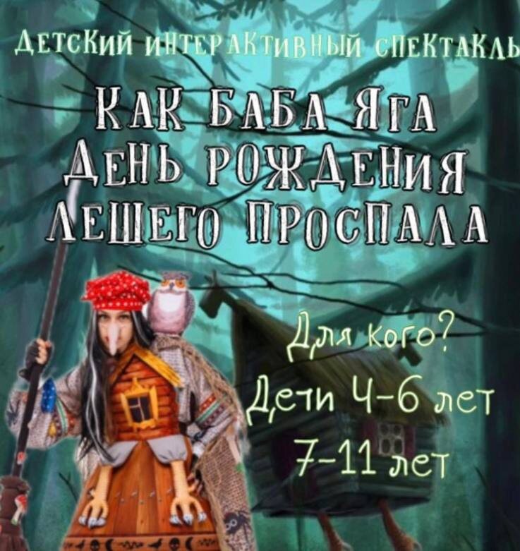 Приглашаем на интерактивный спектакль и трэш вечеринку «Как Баба- Яга День Рождения Лешего проспала» 🧹 КОГДА ? ☘️ 16 ноября ДЛЯ КОГО И ВО СКОЛЬКО ? ☘️ 4-6 лет в 10.00 7-11 лет в 11.30 ГДЕ ? ☘️ Студия сценических искусств и праздника РаДа 📍 2 Лазоревый 1 СКОЛЬКО ? 💴 1500 р ЧТО ВАС ЖДЕТ? 🍄 приключения в сказочный лес с Бабой Ягой 🍄 подготовка поздравления для Лешего 🍄 Фотосессия с главными героями 🍄 гонки в Ступе, 🍄 Гигантский мухомор, 🍄 Армия Кощея Бессмертного и жуткая джига-дрыга от Бабки Ёжки! Забронировать место и купить билет 89381450242