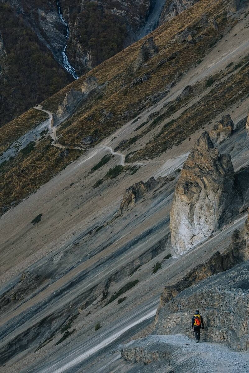 День девятый. Базовый лагерь #Тиличо. Обычно, коммерческие группы проходят путь от Мананга до лагеря Тиличо с остановкой и (или) акклиматизационным выходом. Но мы решили форсировать акклиматизацию и за день прошли около 18 км до высоты 4200. Там меня прибило не на шутку, поэтому бутылка пива в лагере Тиличо осталась закрыта, ужин – недоеден. Наверное это был самый красивый и необычный день маршрута.