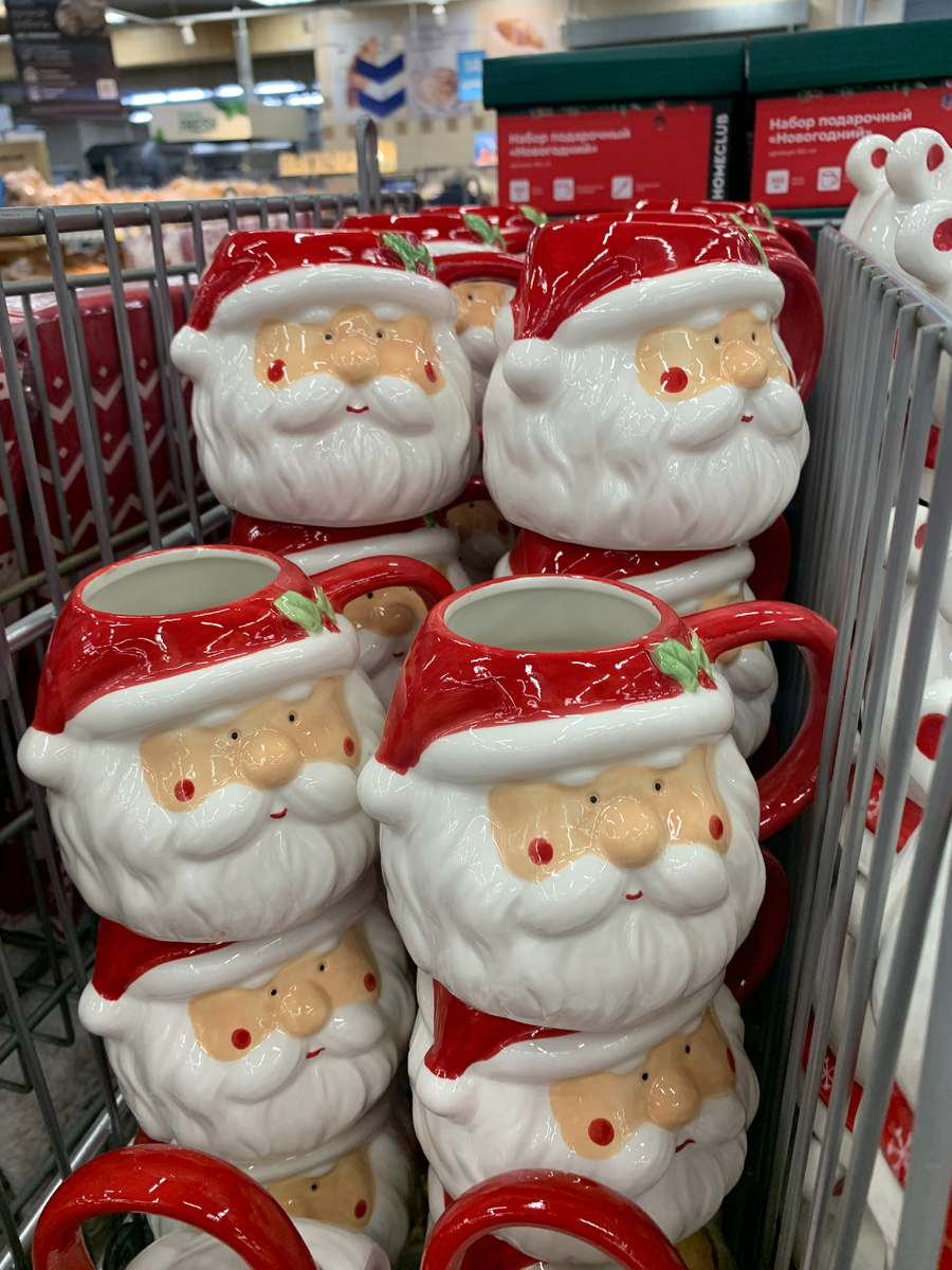 Всем огромный привет! Магазин Лента полон шикарных новинок! И сегодня у меня для вас обзор именно из этого магазина. С новым поступлением товара в Ленте праздничная атмосфера. Все яркое, праздничное. Сразу поднимается настроение! И в этом обзоре я постараюсь передать вам это прекрасное праздничное настроение! Во-первых, в магазине большой выбор посуды с новогодним дизайном. В основном это кружки подарочные. В наличии есть Санта Клаус. Материал керамика. Объем 450 мл. Очень яркие красивые кружки. Я бы обрадовалась такому подарку. По этой же цене есть кружки в виде белого медведя в шарфике. Кружки очень качественно сделаны. Оформление просто огонь! Они все из керамики. Объем 400 мл. Если в начале была голова Санты, то теперь туловище! Объем кружки 400 мл. Материал керамика. Кружка с крышкой. Выполнена в виде снеговика. Материал: керамика. Индивидуальная упаковка, крышка не спадает. Изготовитель Китай. Есть и набор кружек Новогодний. В наборе 2 кружки, соединяя их и ставя на одну др
