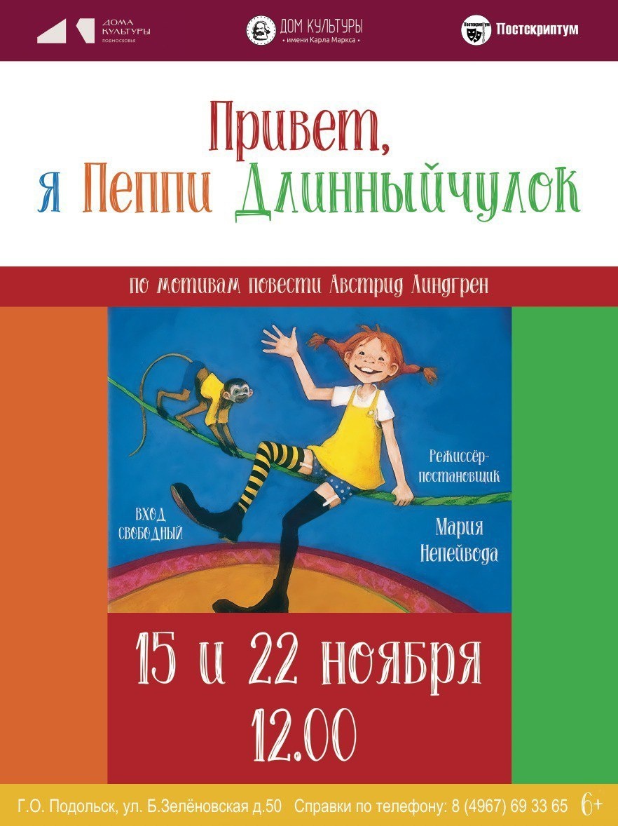 ✨ Спектакль «Привет, я Пэппи Длинныйчулок!» ❓Не знаете как развлечь своих детей в выходные? Мы все уже придумали! Приходите 15 ноября в 12:00 на спектакль «Привет, я Пэппи Длинныйчулок!» в исполнении старшей группы театрального коллектива «Постскриптум»! Режиссёр - постановщик Мария Непейвода 🚫 Возраст: 6+ 📆 15.11.2025 🕒 12:00 🏢 ДК им. Карла Маркса 📍 г. Подольск, ул. Большая Зелёновская, 50 💰 Вход свободный❗️ #Постскриптум ⭐Поддержать канал голосом 💰 Вакансия - курьер в Подольске ✅ Мероприятия Подольск https://dzen.ru/id/66ed500f7b5671493eca3fd6 http://vk.com/podolsk_events http://dzen.ru/podolsk_events