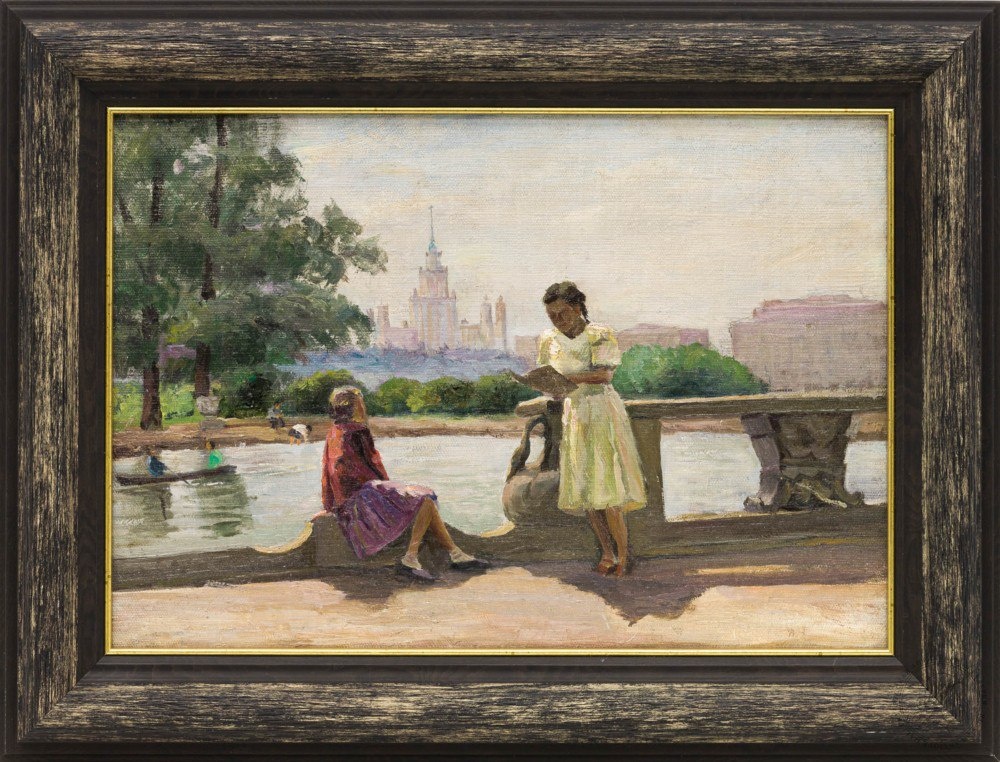 Русская антикварная галерея Сайт: rus-gal.ru #Черноиванов И. П.- #Картина «#Девочки на Лужнецкой набережной» #СССР, 1960-е годы. Холст, масло. 31 Х 44,5 см #Соцреализм #Жанровые_картины Подробнее: https://rus-gal.ru/works/devochki-na-luzhnetskoy-naberezhnoy/