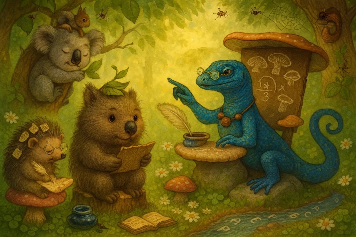 В далекой-предалекой Австралии, там, где солнечные зайчики играют в прятки с тенью от листьев эвкалипта, притаился удивительный городок - Вомбат-град. Здесь тротуары вымощены мягким бархатным песочком, воздух пахнет конфетами и свежеиспеченным печеньем, а в разноцветных домиках-норках с окошками-иллюминаторами живут самые невероятные сказочные жители. Мудрый Варан в очках из капель росы читает газеты, свернутые в трубочку, пушистые Вомбаты соревнуются, у кого в печке бисквит получится пышнее и ароматнее, а семьи кенгуру по утрам устраивают веселые прыгательные забеги, а их сумки пощелкивают от запасов вкуснейшего мармелада. Это место, где заплетают траву в косы, чтобы было красиво, где пауки ткут гамаки для уставших букашек, а крепкая дружба и взаимовыручка - самые главные и нерушимые правила.
