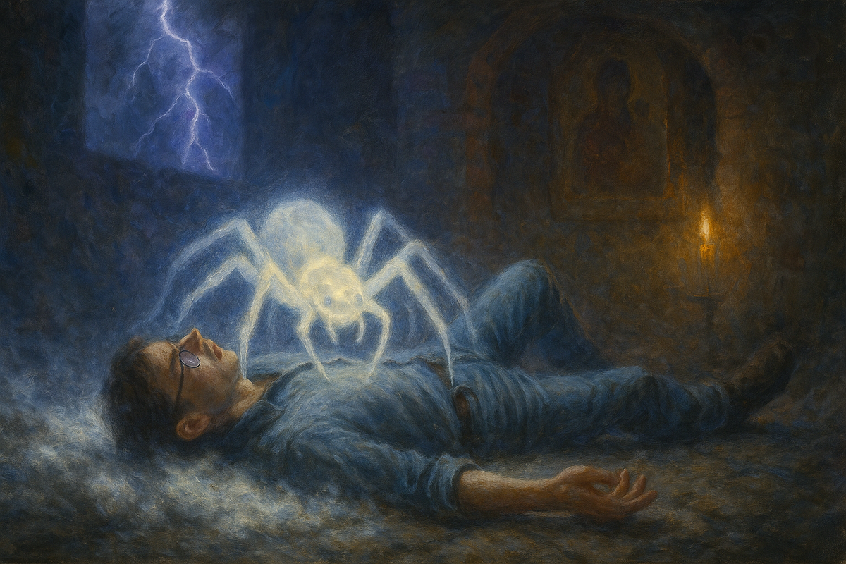 Придя в себя, Глеб увидел, что лежит в белой массе: не пух, а будто шарики от пенопласта. А на груди невесом – огромный белый паук.