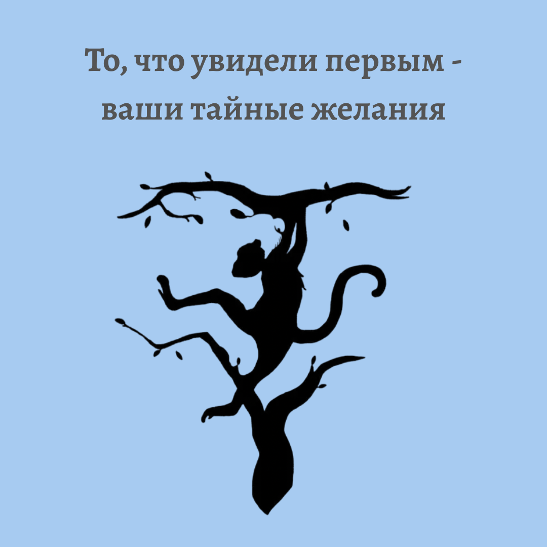 Посмотрите на картинку без раздумий. Что увидели первым? Читайте значение 👇👇 Напишите в комментариях, как вам результаты. 1. Обезьяна Вы - любопытный человек, которому важно познавать новое. Тянет к приключениям, переменам и живому общению. Тайное желание - свобода от рутины, путешествия и яркая жизнь. 2. Дерево Вы ищете внутреннюю стабильность и уверенность. В глубине души мечтаете о покое, гармонии и надежных отношениях. Вам важно чувствовать почву под ногами. 3. Человеческий силуэт Вы человек с богатым внутренним миром. Тайное желание - самопознание и принятие себя. Возможно, вы находитесь на этапе перемен и ищете, кто вы на самом деле. 4. Летучая мышь У вас развитая интуиция, восприимчивы к энергиям других людей. Скрытая мечта - научиться чувствовать и видеть больше, чем другие. 💞 #знакомства #любовь #тест #психология #RusDate
