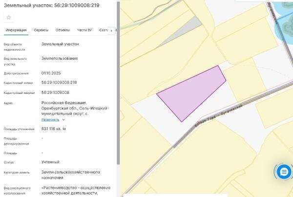 Название: Земельный участок с кадастровым номером 56:29:1009008:219, площадь 631116 кв.м., по адресу Российская Федерация, Оренбургская